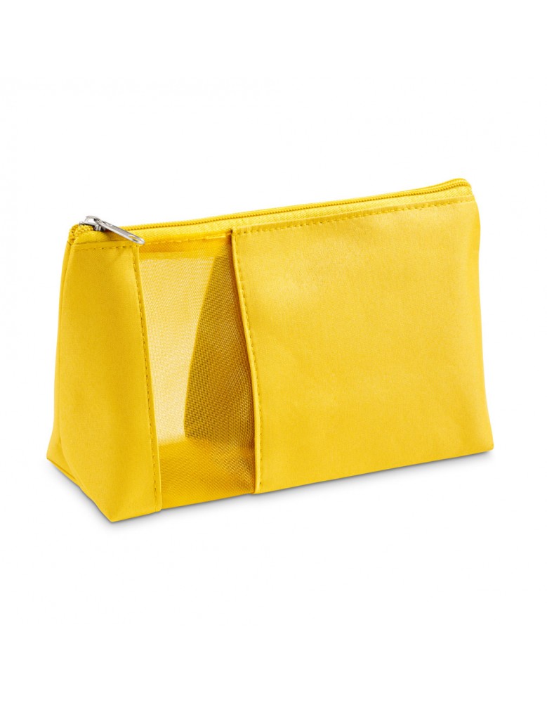 Com detalhe em rede, a nécessaire está disponível em azul, amarelo, bege, rosa, preto e vermelho.