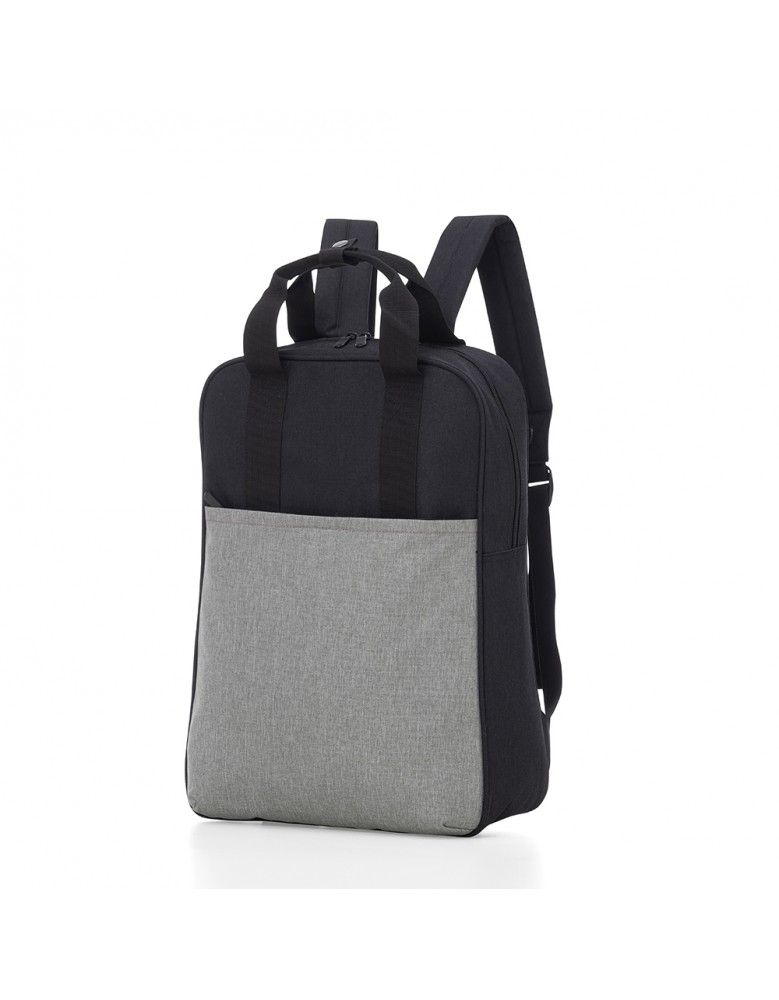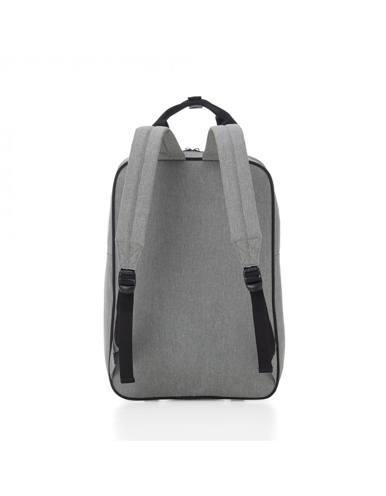 Mochila confeccionada em Poliéster com capacidade para 22 litros. Contém bolso frontal com zíper, alça de mão em nylon, suporte para junção das alças de mão, e alças para as costas ajustáveis. Possui bolso interno para notebook até 17 polegadas.