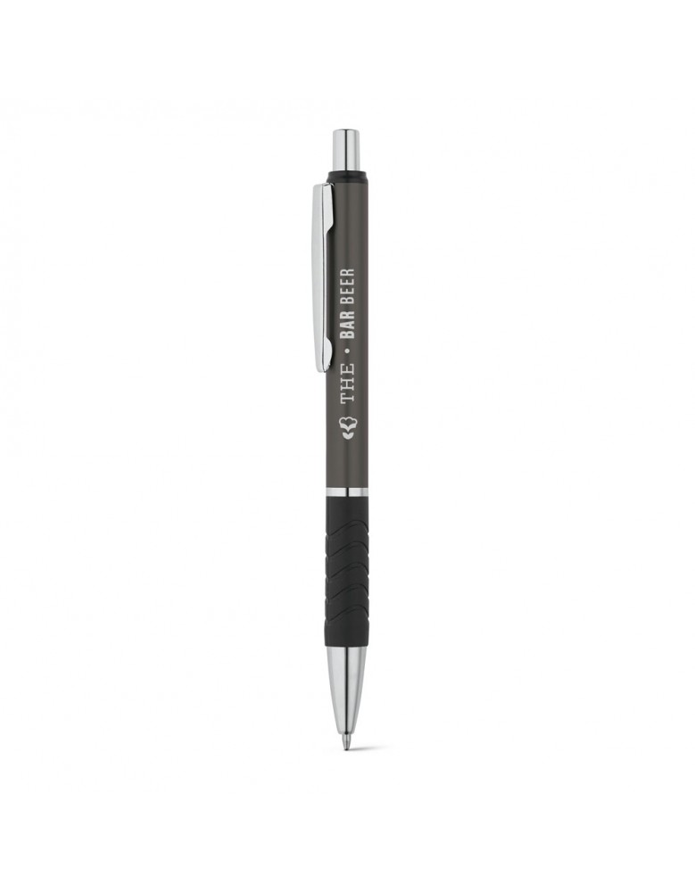 Esferográfica em alumínio com clipe de metal e grip. Até 1,5 km de escrita. ø10 x 136 mm
