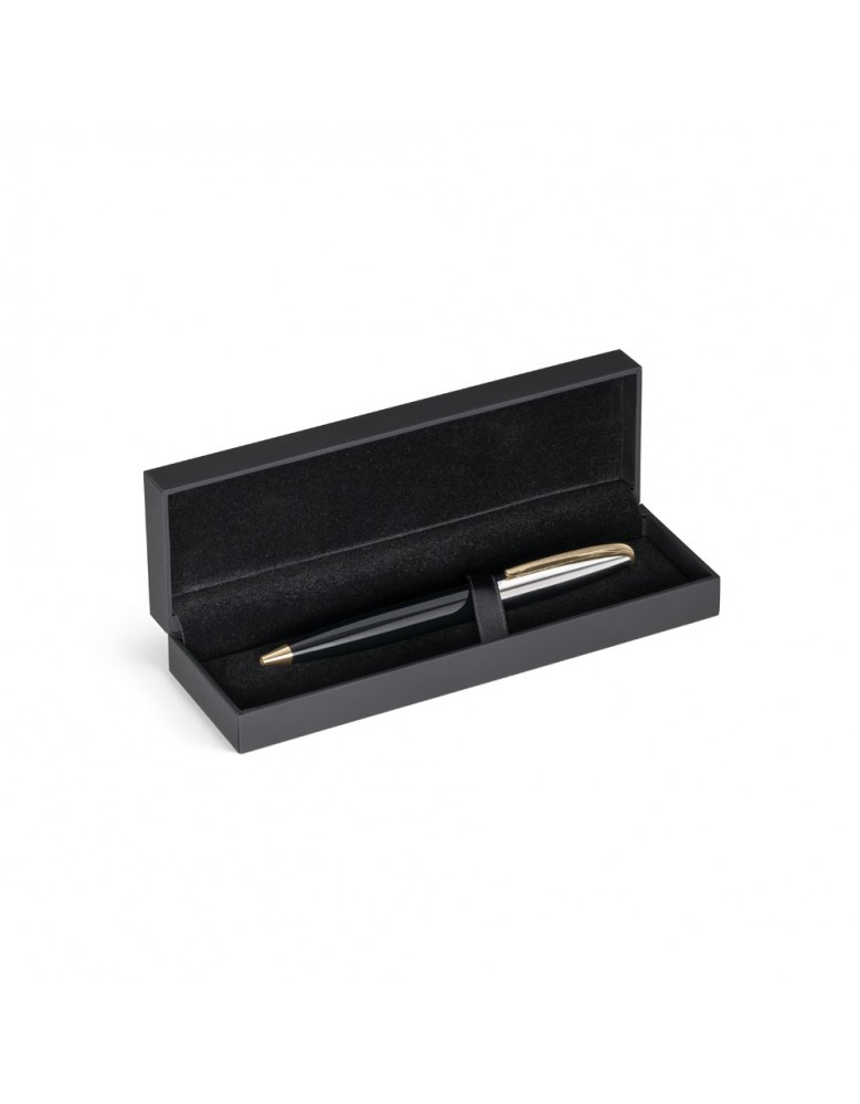 Esferográfica em metal. Clipe, anel e ponteira com banho de ouro de 18 quilates. Até 1,5 km de escrita. Fornecida em estojo almofadado. ø12 x 139 mm | Estojo: 179 x 56 x 30 mm