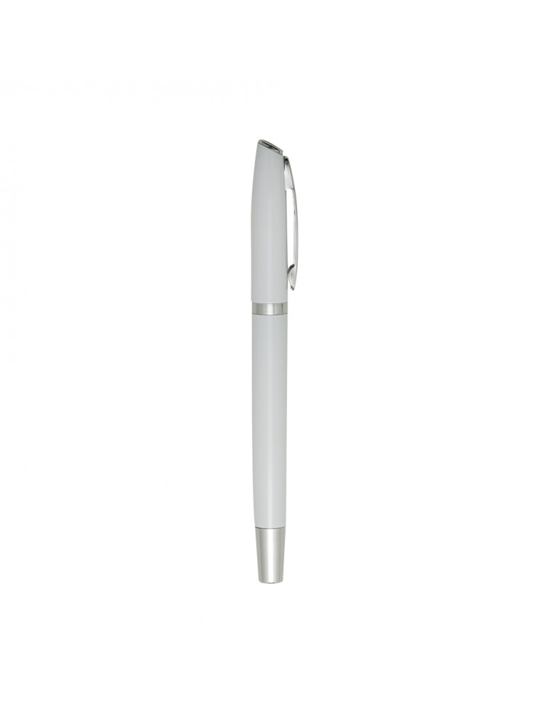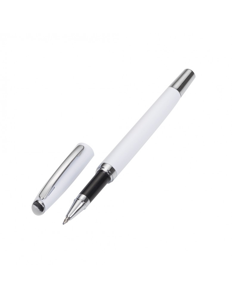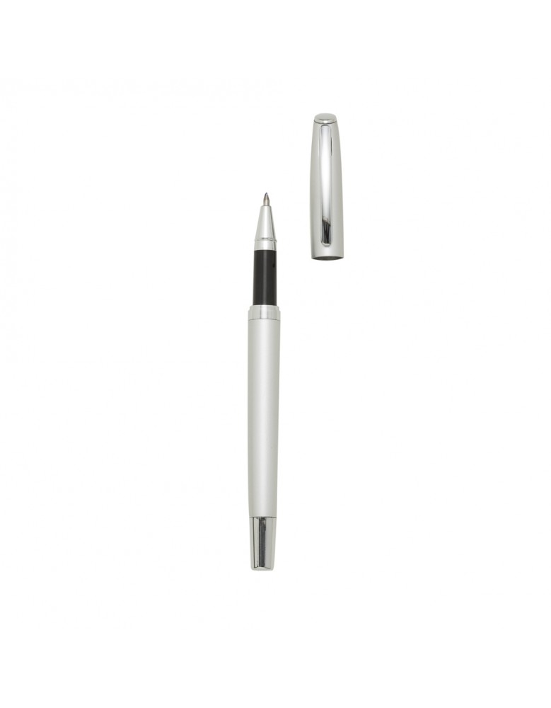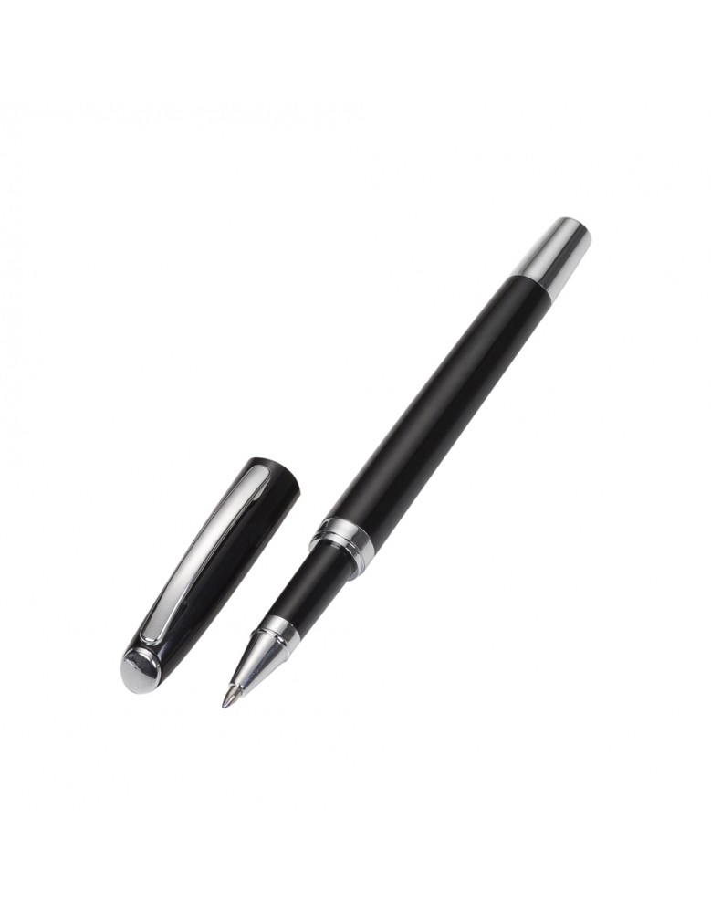 Caneta metal com tampa, carga rollerball azul.