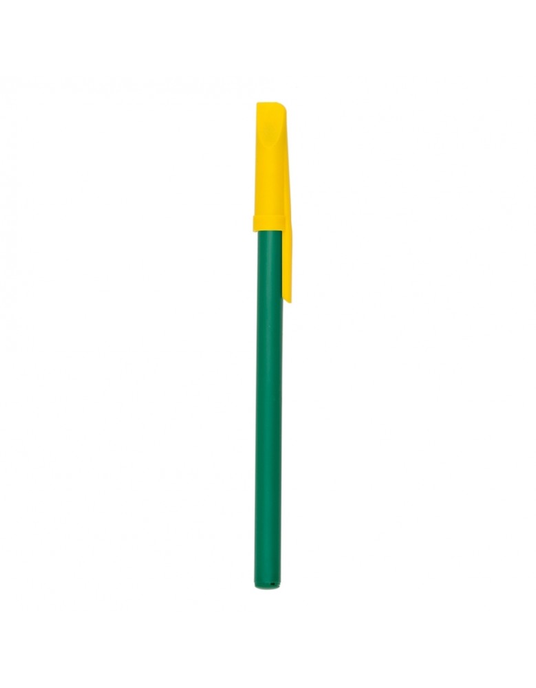 Caneta plástica com tampa. Carga esferográfica azul. Possível solicitar diversas combinações de cores de tampa e corpo da caneta. Consulte seu(a) vendedor(a).