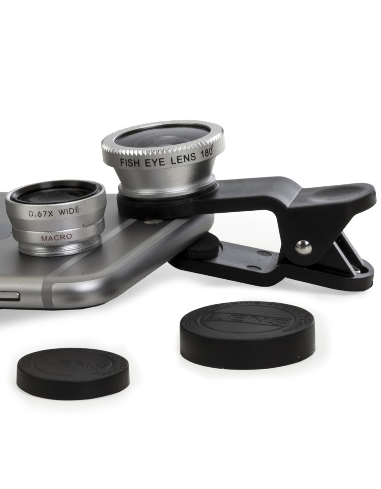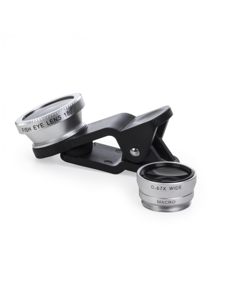 Descrição: Conjunto universal de lentes para celular. Possui lente fish eye, lente macro, lente wide angle e prendedor Basta rosquear as lentes no prendedor e posicioná-lo na câmera do celular para seu funcionamento. Acompanha veludo para guardar os itens.