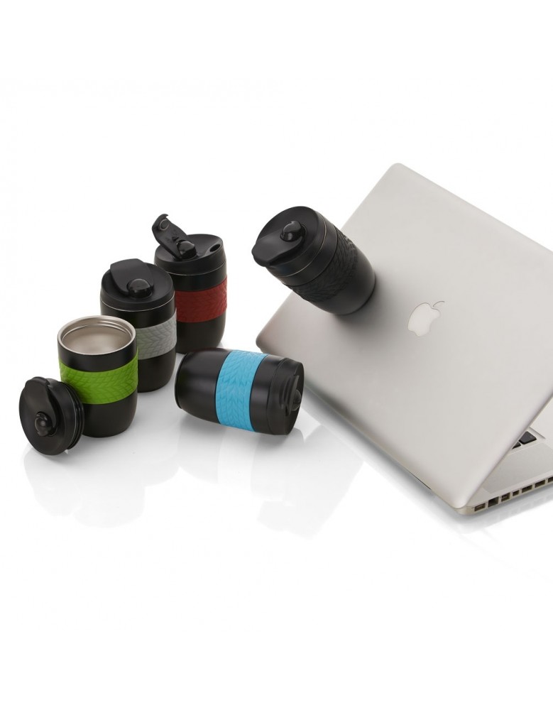 Copo antiqueda 250ml produzido em inox com parede dupla e luva de silicone, possui tampa plástica rosqueável com proteção para o bocal e parte inferior com ventosa para fixação. Obs.: Conserva temperatura.