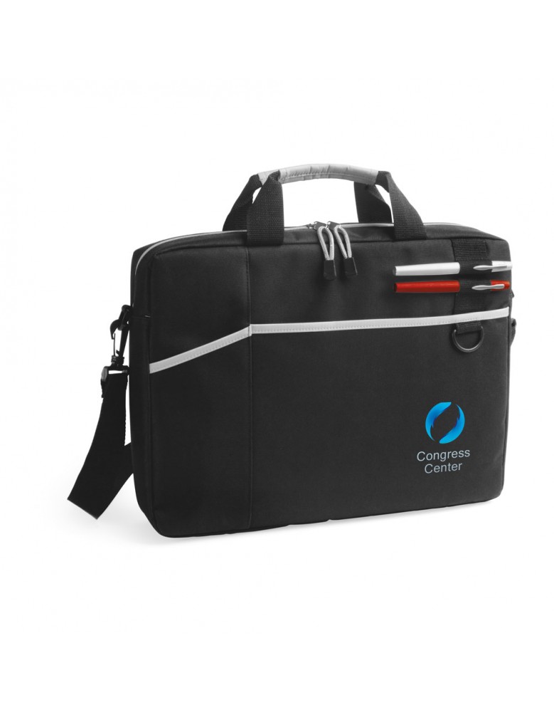Pasta para notebook até 15.6'' em 600D com interior forrado e almofadado. Tem 2 bolsos frontais e alça de ombro ajustável. A pasta tem suporte para esferográficas (não inclusas). 400 x 300 x 80 mm