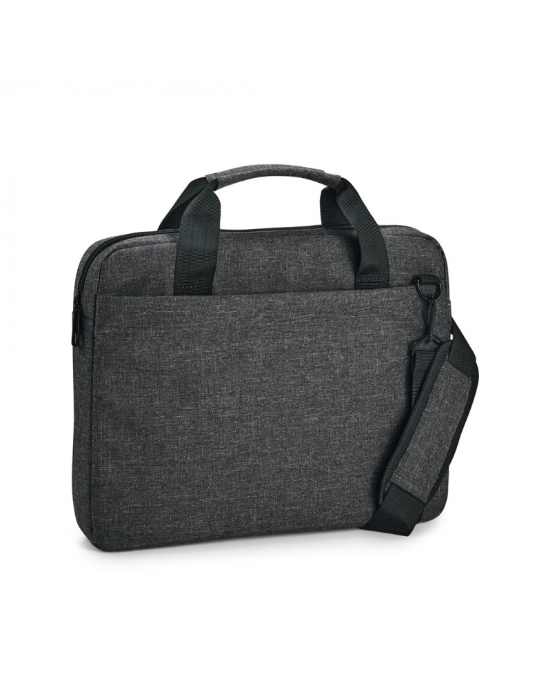 Pasta para notebook em 600D de alta densidade. Compartimento forrado e almofadado, com divisória para notebook até 14''. A pasta tem um bolso frontal, alça de ombro ajustável, com reforço almofadado e banda para transporte em trolley. 370 x 280 x 50 mm