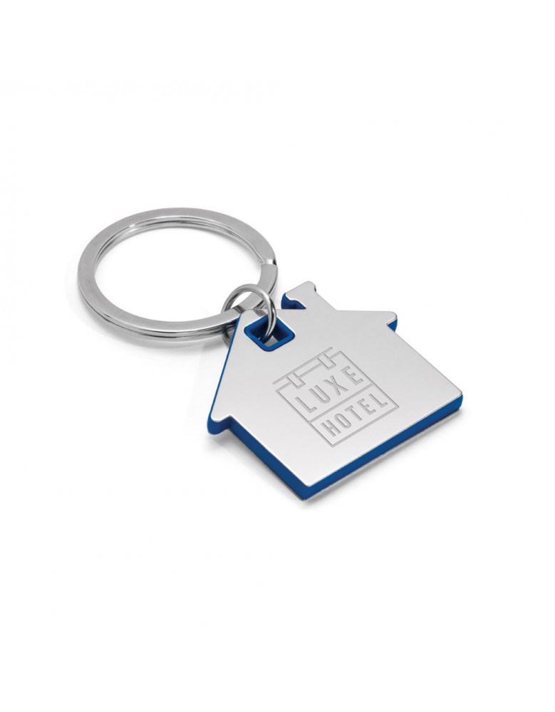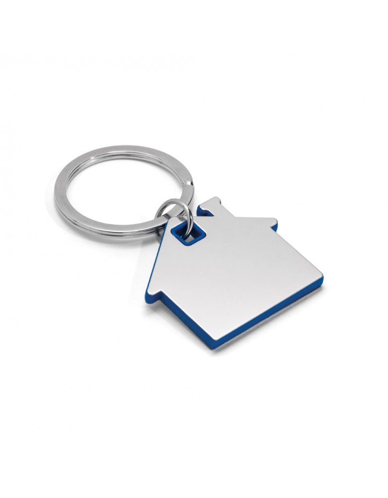 Chaveiro em formato de casa em metal e ABS. 42 x 37 x 4 mm