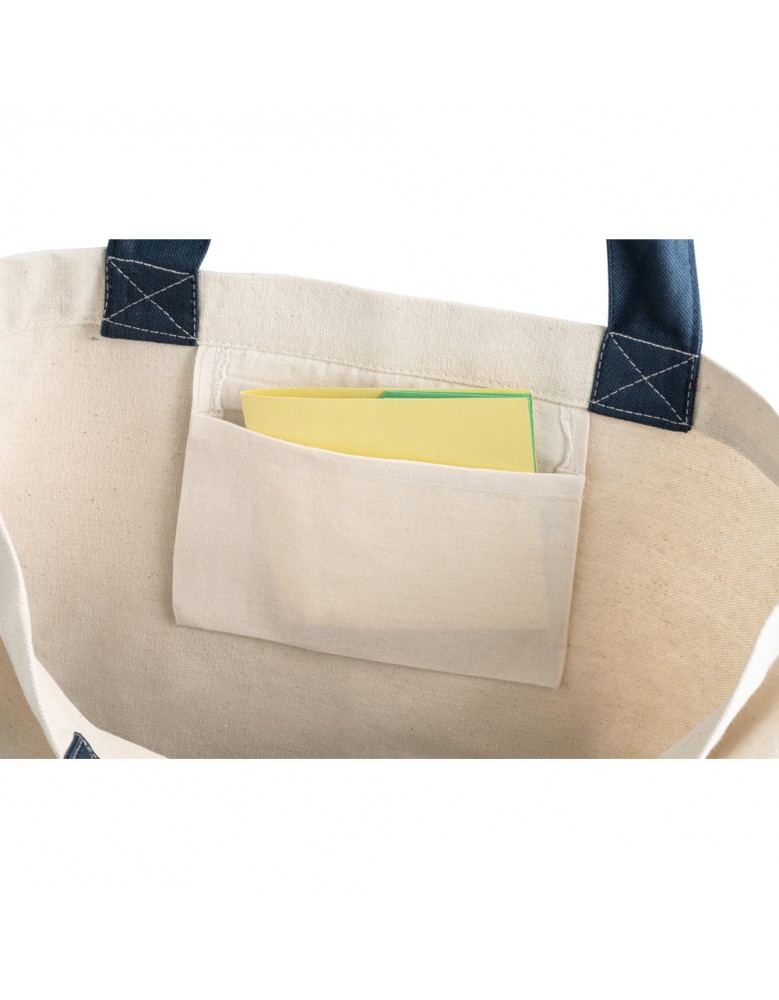 Sacola 100% algodão canvas (280 g/m²) com bolso interior e alças de 65 cm. 460 x 400 x 150 mm